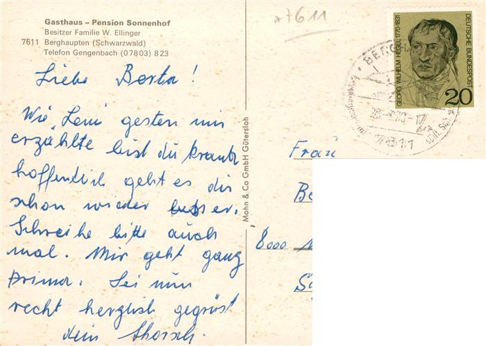 73901919 alte Postkarte Berghaupten Gasthaus Pension Sonnenhof Gastraum postalisch gelaufen Erhaltung siehe scans [FriedD77] KatCode: 11110008317009