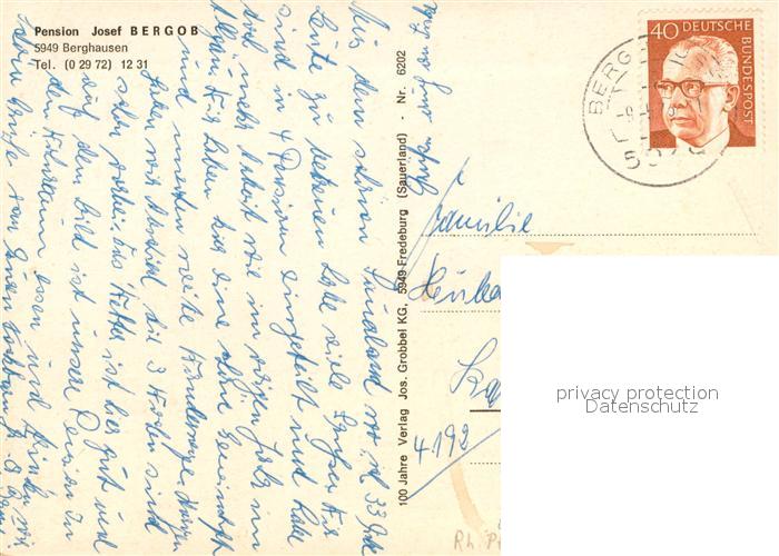 73662608 alte Postkarte Berghausen Schmallenberg Pension Bergob Fremdenzimmer postalisch gelaufen Erhaltung siehe scans [FriedD77] KatCode: 11110005958040