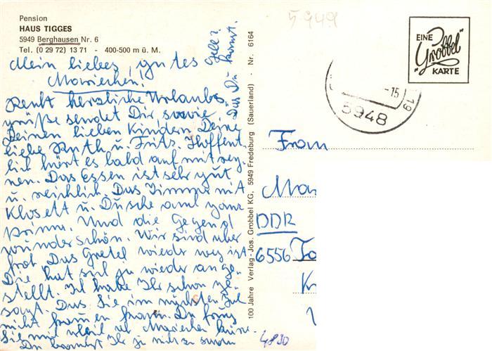 73883159 alte Postkarte Berghausen Schmallenberg Pension Haus Tigges Gaststube Garten Kinderspielplatz postalisch gelaufen Erhaltung siehe scans [FriedD77] KatCode: 11110005958040