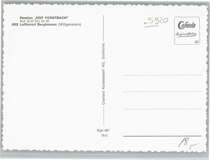 40675787 Berghausen Wittgenstein Pension Forstbach KatCode 11110005970004