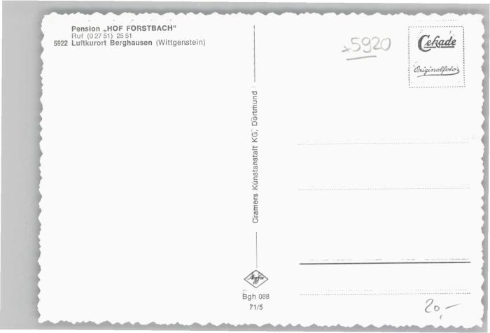 40676298 Berghausen Wittgenstein Pension Hof Forstbach KatCode 11110005970004