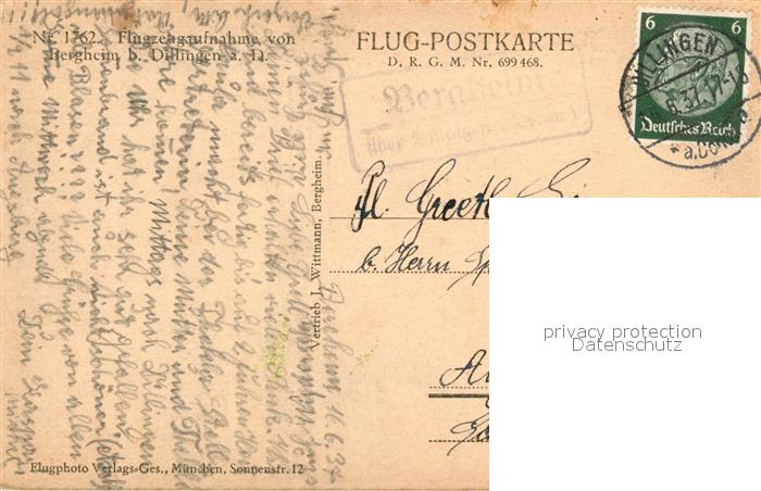 33153688 alte Postkarte Bergheim Augsburg Fliegeraufnahme postalisch gelaufen Erhaltung siehe scans [KathaD81] KatCode: 11110009761000