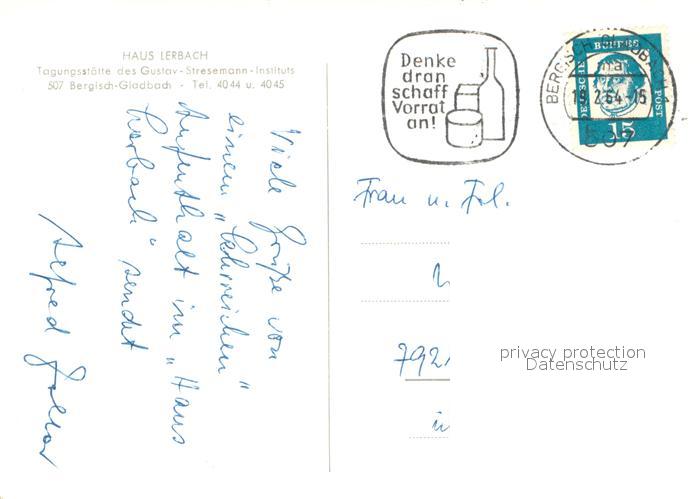 73743432 alte Postkarte Bergisch Gladbach Haus Lerbach Tagungsstaette postalisch gelaufen Erhaltung siehe scans [LiesaD40] KatCode: 11110005378004