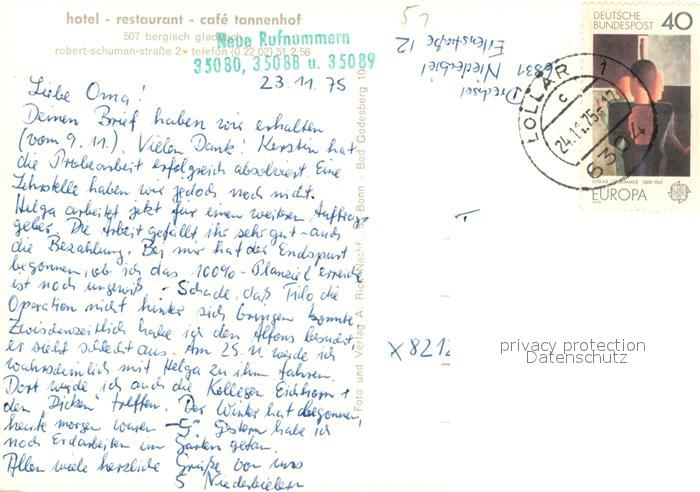73569552 alte Postkarte Bergisch Gladbach Hotel Restaurant Cafe Tannenhof postalisch gelaufen Erhaltung siehe scans [WerneD78] KatCode: 11110005378004