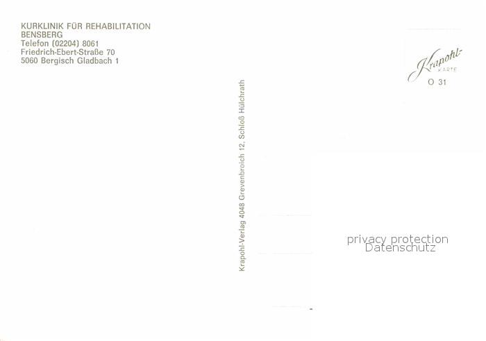 72902605 Bergisch Gladbach Kurklinik fuer Rehabilitation Bensberg postalisch nicht gelaufen Erhaltung siehe scans [FriedD77] KatCode: 11110005378004