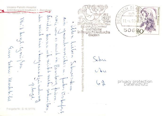 73010132 alte Postkarte Bergisch Gladbach Vinzenz Pallotti Hospital Fliegeraufnahme postalisch gelaufen Erhaltung siehe scans [WerneD78] KatCode: 11110005378004