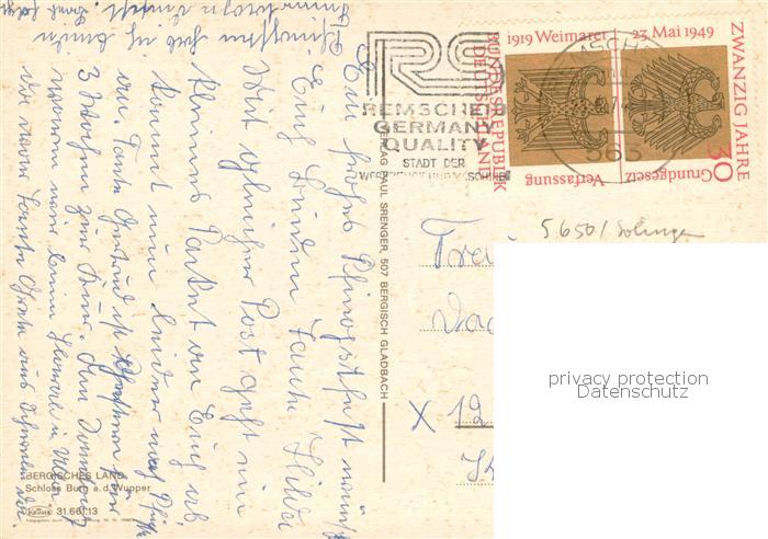 73757121 alte Postkarte Bergisches Land Fliegeraufnahme Schloss Burg a.d. Wupper postalisch gelaufen Erhaltung siehe scans [LiesaD40] KatCode: 11110005378016