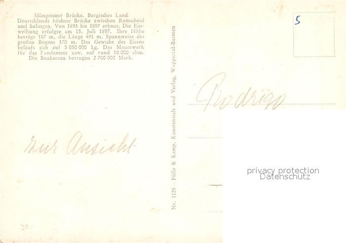 72931155 Bergisches Land Muengstener Bruecke postalisch nicht gelaufen Erhaltung siehe scans [KathaD81] KatCode: 11110005378016