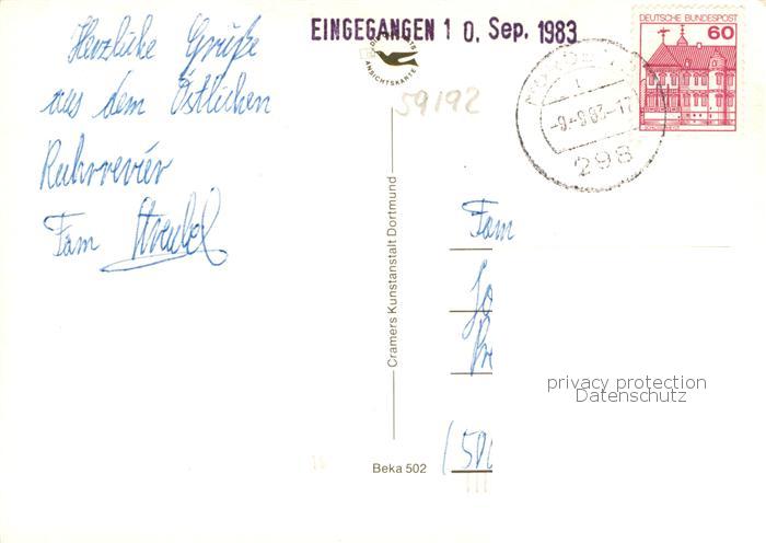 73865521 alte Postkarte Bergkamen Minigolfanlage Stadtverwaltung Zeche Tennisplatz Schumacherplatz Strassenpartie Turnhalle Bildungsheim Freibad postalisch gelaufen Erhaltung siehe scans [FriedD77] KatCode: 11110005978004