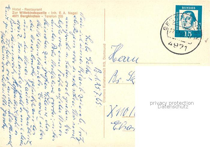 73607966 alte Postkarte Bergkirchen Bad Salzuflen Hotel Restaurant Zur Wittekindsquelle postalisch gelaufen Erhaltung siehe scans [WerneD78] KatCode: 11110005766008