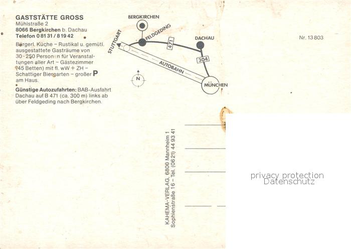 73112086 Bergkirchen Dachau Gaststaette Gross postalisch nicht gelaufen Erhaltung siehe scans [NatalD47] KatCode: 11110009174113