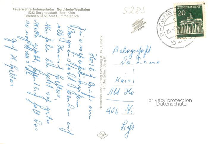 73751433 alte Postkarte Bergneustadt Feuerwehrerholungsheim Nordrhein Westfalen Eingangshalle Leseraum Terrasse Speisesaal Kegelbahn Panorama postalisch gelaufen Erhaltung siehe scans [WerneD78] KatCode: 11110005374004