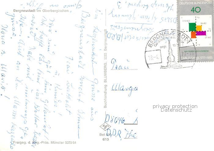 72987307 alte Postkarte Bergneustadt Fliegeraufnahme postalisch gelaufen Erhaltung siehe scans [WerneD78] KatCode: 11110005374004