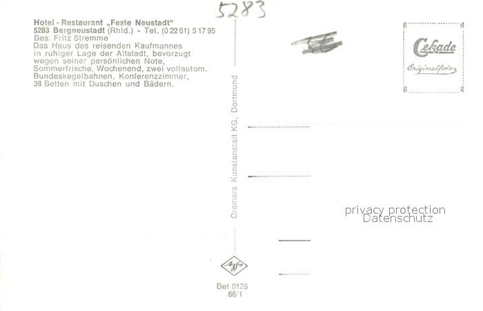 73706075 Bergneustadt Hotel-Restaurant Feste-Neustadt Innen- und Aussenansicht postalisch nicht gelaufen Erhaltung siehe scans [LiesaD40] KatCode: 11110005374004