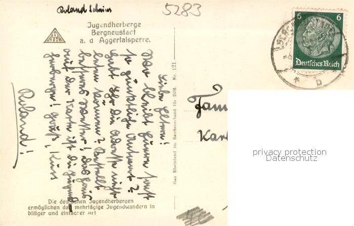 73698113 alte Postkarte Bergneustadt Jugendherberge an der Aggertalsperre postalisch gelaufen Erhaltung siehe scans [FriedD77] KatCode: 11110005374004