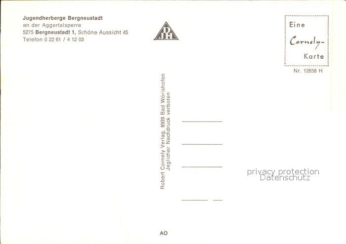 72599798 Bergneustadt Jugendherberge an der Aggertalsperre Cornely Karte Nr 12658 H postalisch nicht gelaufen Erhaltung siehe scans [FriedD77] KatCode: 11110005374004