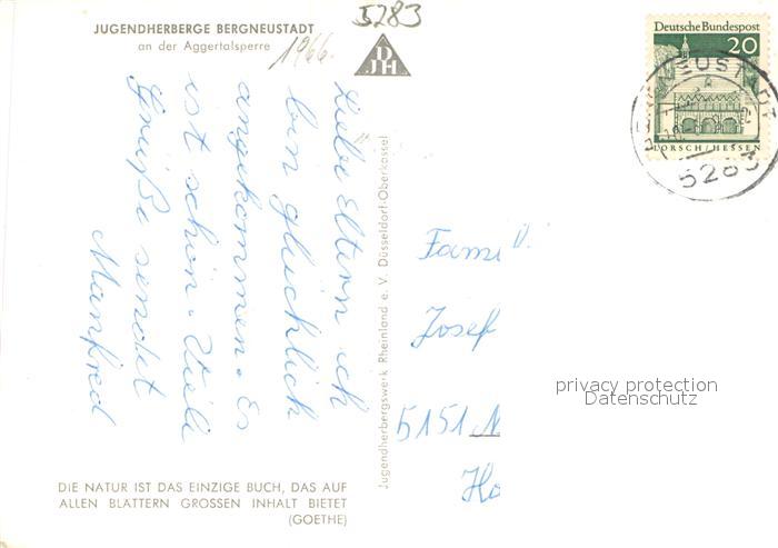 73698727 alte Postkarte Bergneustadt Jugendherberge Poesie Goethe postalisch gelaufen Erhaltung siehe scans [FriedD77] KatCode: 11110005374004