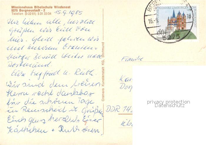 73726401 alte Postkarte Bergneustadt Missionshaus Bibelschule Wiedenest Gast und Versanstaltungsraum postalisch gelaufen Erhaltung siehe scans [WerneD78] KatCode: 11110005374004