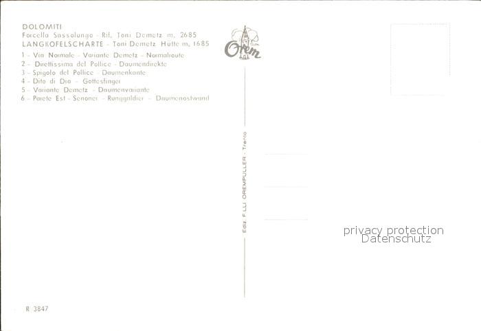 Bergsteigen Klettern Route Dolomiti Forcella Sassolungo Langkofelscharte postalisch nicht gelaufen Erhaltung siehe scans