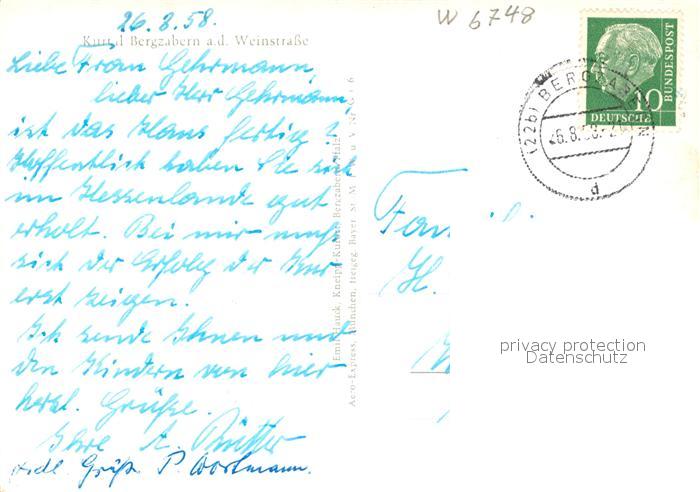 33051412 alte Postkarte Bergzabern Bad Fliegeraufnahme postalisch gelaufen Erhaltung siehe scans [NatalD47] KatCode: 11110007337005