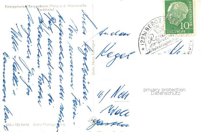 73332335 alte Postkarte Bergzabern Bad Parkhotel postalisch gelaufen Erhaltung siehe scans [WerneD78] KatCode: 11110007337005