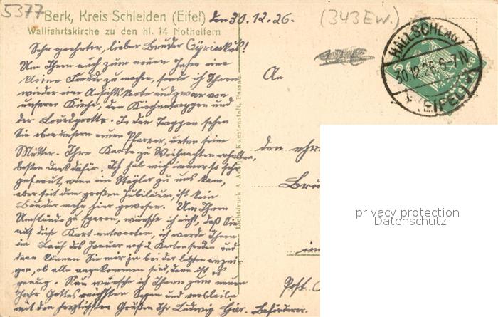 73695888 alte Postkarte Berk Eifel Wallfahrtskirche zu den hl 14 Nothelfern postalisch gelaufen Erhaltung siehe scans [WerneD78] KatCode: 11110005366012