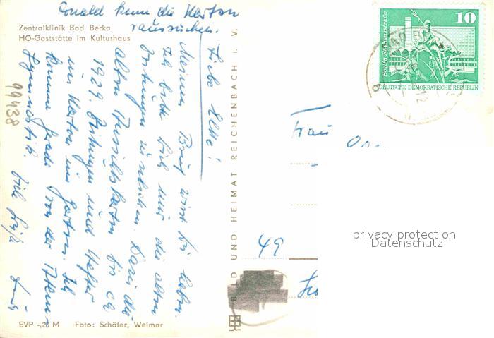 72639459 alte Postkarte Berka Bad HO Gaststaette Kulturhaus Zentralklinik postalisch gelaufen Erhaltung siehe scans [KathaD79] KatCode: 11110016071003