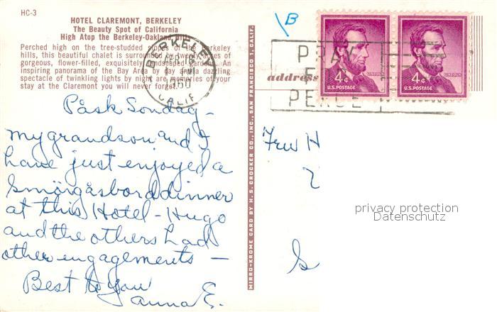 73646783 old postcard Berkeley California Hotel Claremont Air view postalisch gelaufen Erhaltung siehe scans [WerneD78] KatCode: 14140050000000