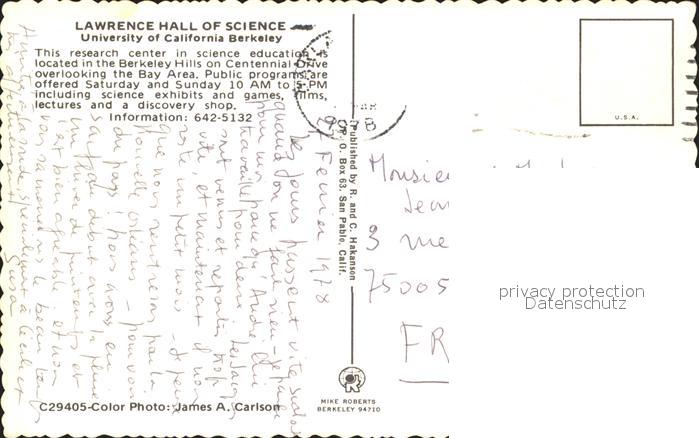 72296654 old postcard Berkeley California Lawrence Hall of Science postalisch gelaufen Erhaltung siehe scans KatCode: 14140050000000