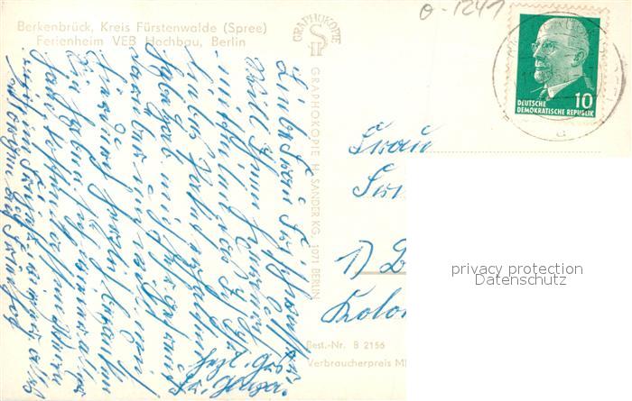 43351526 alte Postkarte Berkenbrueck Fuerstenwalde Ferienheim VEB Hochbau Berlin postalisch gelaufen Erhaltung siehe scans [KathaD81] KatCode: 11110012067040