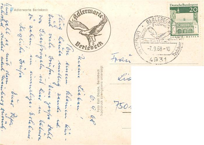 73934672 alte Postkarte Berlebeck Adlerwarte Berlebeck postalisch gelaufen Erhaltung siehe scans [FriedD77] KatCode: 11110005766020