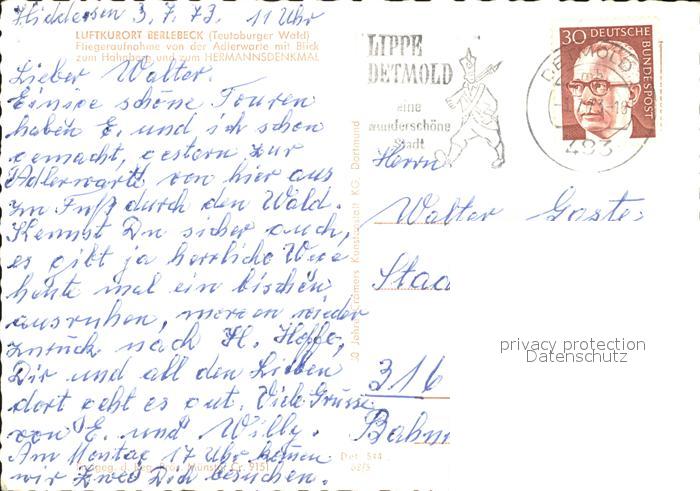 72102467 alte Postkarte Berlebeck Fliegeraufnahme postalisch gelaufen Erhaltung siehe scans KatCode: 11110005766020
