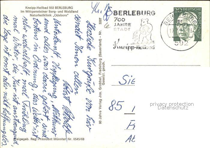 72284944 alte Postkarte Berleburg Bad Fliegeraufnahme Naturheilklinik Odeborn postalisch gelaufen Erhaltung siehe scans KatCode: 11110005970004