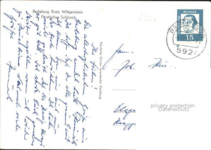 72450664 alte Postkarte Berleburg Bad Fuerstliches Schloss postalisch gelaufen Erhaltung siehe scans KatCode: 11110005970004