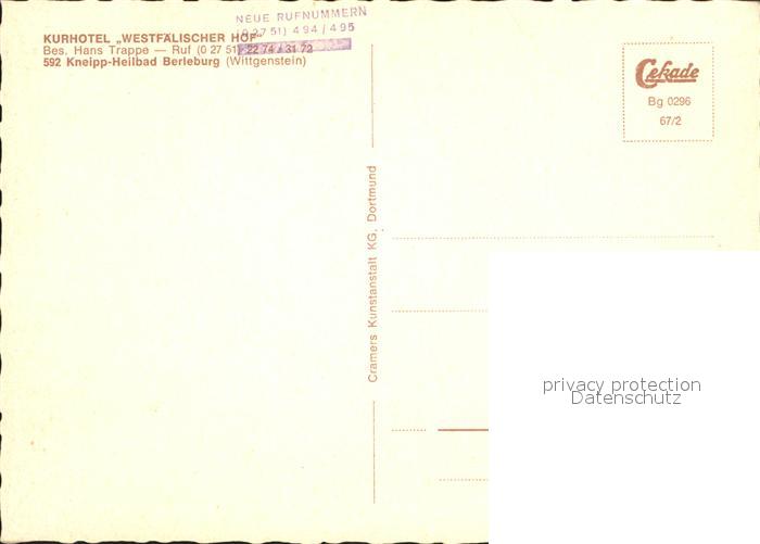 72051684 Berleburg Bad Kurhotel Westfaelischer Hof Kneipp Heilbad postalisch nicht gelaufen Erhaltung siehe scans KatCode: 11110005970004