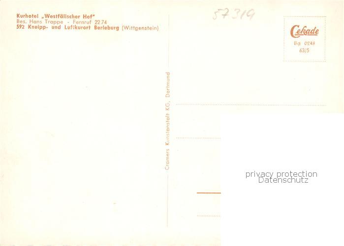 73865722 Berleburg Bad Kurhotel Westfaelischer Hof Restaurant Panorama Kneipp- und Luftkurort postalisch nicht gelaufen Erhaltung siehe scans [FriedD77] KatCode: 11110005970004