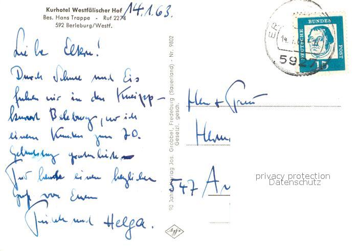 73172462 alte Postkarte Berleburg Bad Kurhotel Westfaelischer Hof postalisch gelaufen Erhaltung siehe scans [NatalD47] KatCode: 11110005970004