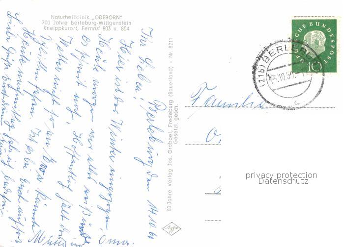 72775143 alte Postkarte Berleburg Bad Naturheilklinik Odeborn postalisch gelaufen Erhaltung siehe scans [AndreD76] KatCode: 11110005970004