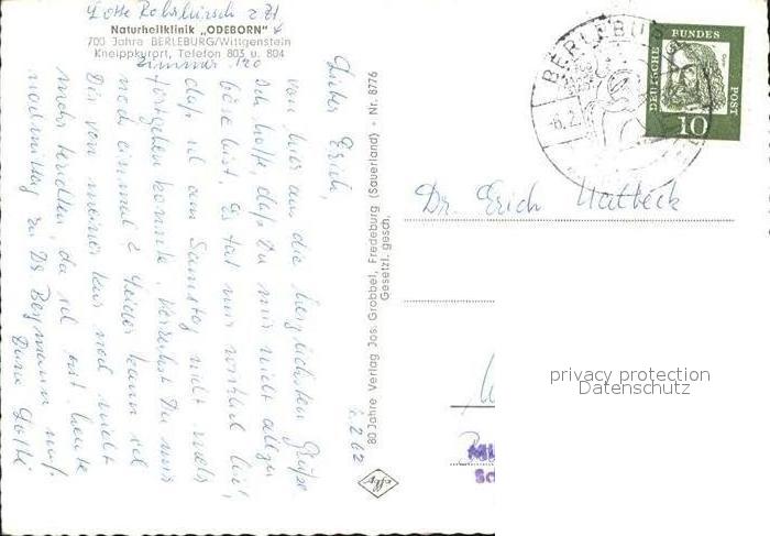 72448465 alte Postkarte Berleburg Bad Naturheilklinik Odeborn Zimmer postalisch gelaufen Erhaltung siehe scans KatCode: 11110005970004
