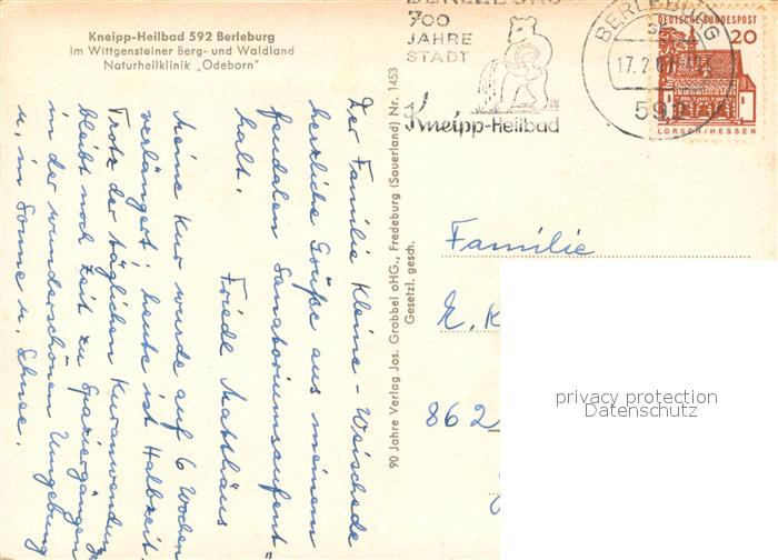 73685392 alte Postkarte Berleburg Bad Naturheilklinik Odeborn postalisch gelaufen Erhaltung siehe scans [WerneD78] KatCode: 11110005970004