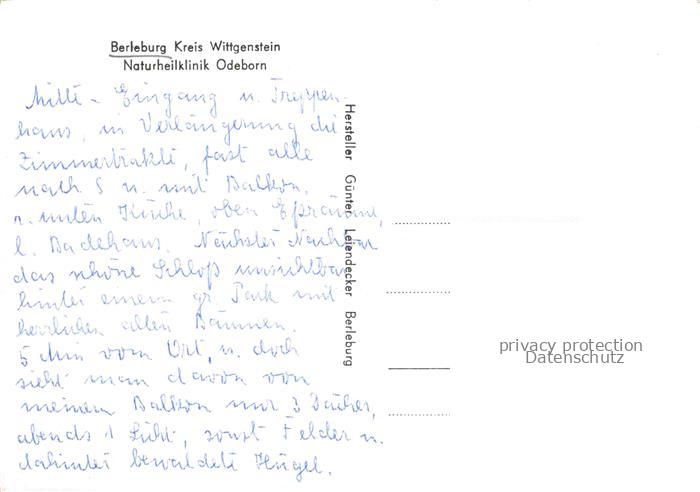 Berleburg Bad NRW Naturheilklinik Odeborn postalisch nicht gelaufen Erhaltung siehe scans [FriedD77] Frie Katcode 11110005970004