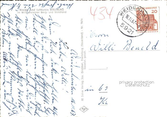 72061378 alte Postkarte Berleburg Bad Schloss Wittgenstein Wittgensteiner Bergland Fliegeraufnahme postalisch gelaufen Erhaltung siehe scans KatCode: 11110005970004