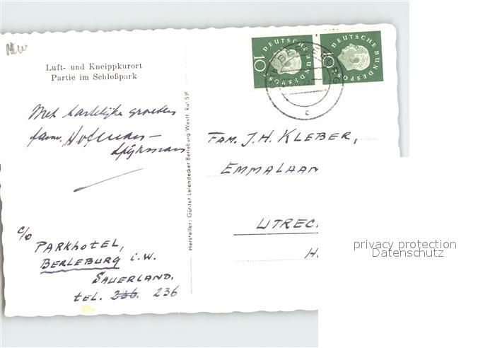 72036994 alte Postkarte Berleburg Bad Schlosspark Schwaene postalisch gelaufen Erhaltung siehe scans KatCode: 11110005970004