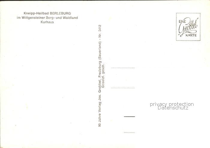 72284943 Berleburg Bad Wittgensteiner Berg- Waldland Kurhaus postalisch nicht gelaufen Erhaltung siehe scans KatCode: 11110005970004