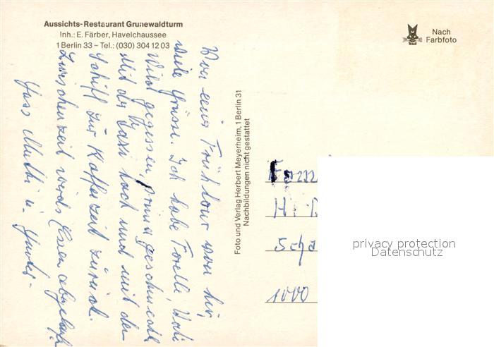 73312872 alte Postkarte Berlin Aussichtsrestaurant Grunewaldturm postalisch gelaufen Erhaltung siehe scans [KathaD81] KatCode: 11110011000000