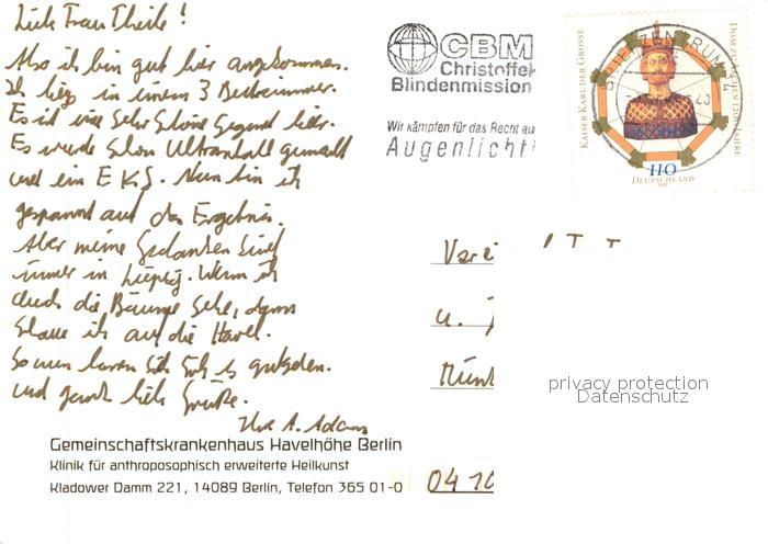 73656677 alte Postkarte Berlin Bad Segeberg Gemeinschaftskrankenhaus Havelhoehe postalisch gelaufen Erhaltung siehe scans [WerneD78] KatCode: 11110001060005