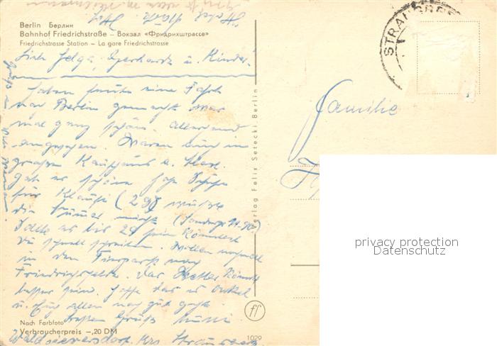 73302394 alte Postkarte Berlin Bahnhof Friedrichstrasse postalisch gelaufen Erhaltung siehe scans [FriedD77] KatCode: 11110011000000