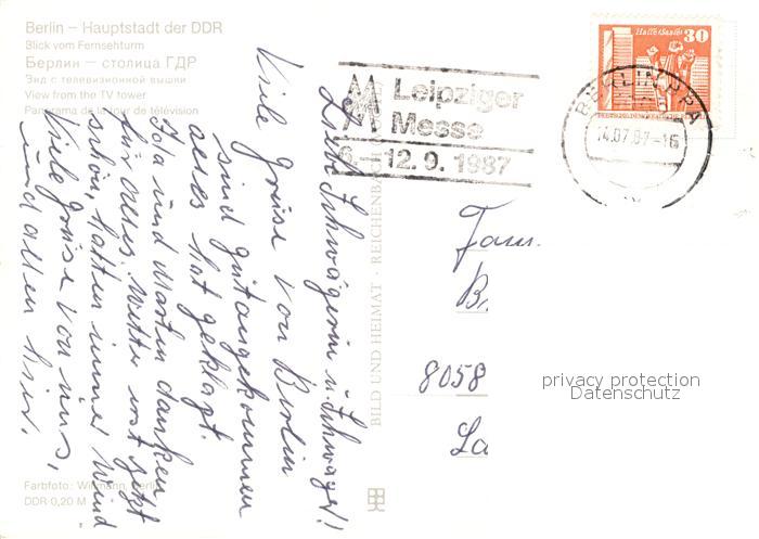 73580571 alte Postkarte Berlin Blick vom Fernsehturm Nachtaufnahme postalisch gelaufen Erhaltung siehe scans [KathaD81] KatCode: 11110011000000