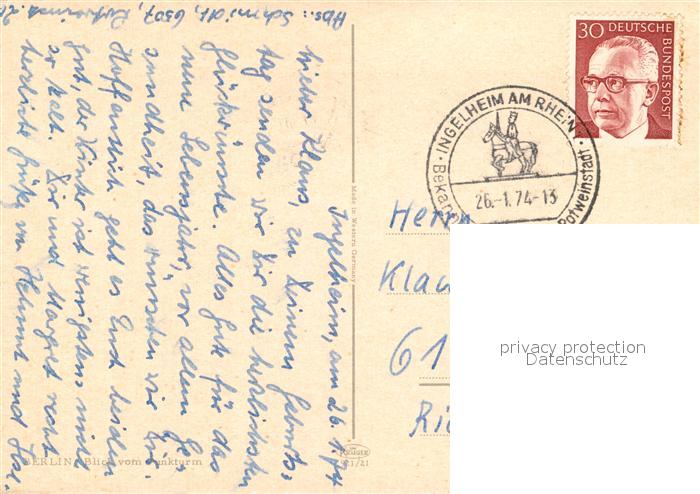 73358171 alte Postkarte Berlin Blick vom Funkturm postalisch gelaufen Erhaltung siehe scans [KathaD81] KatCode: 11110011000000