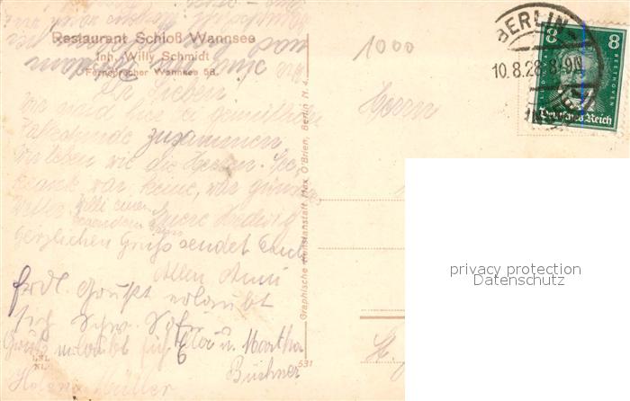 73571113 alte Postkarte Berlin Blick vom Restaurant Schloss Wannsee postalisch gelaufen Erhaltung siehe scans [WerneD78] KatCode: 11110011000000